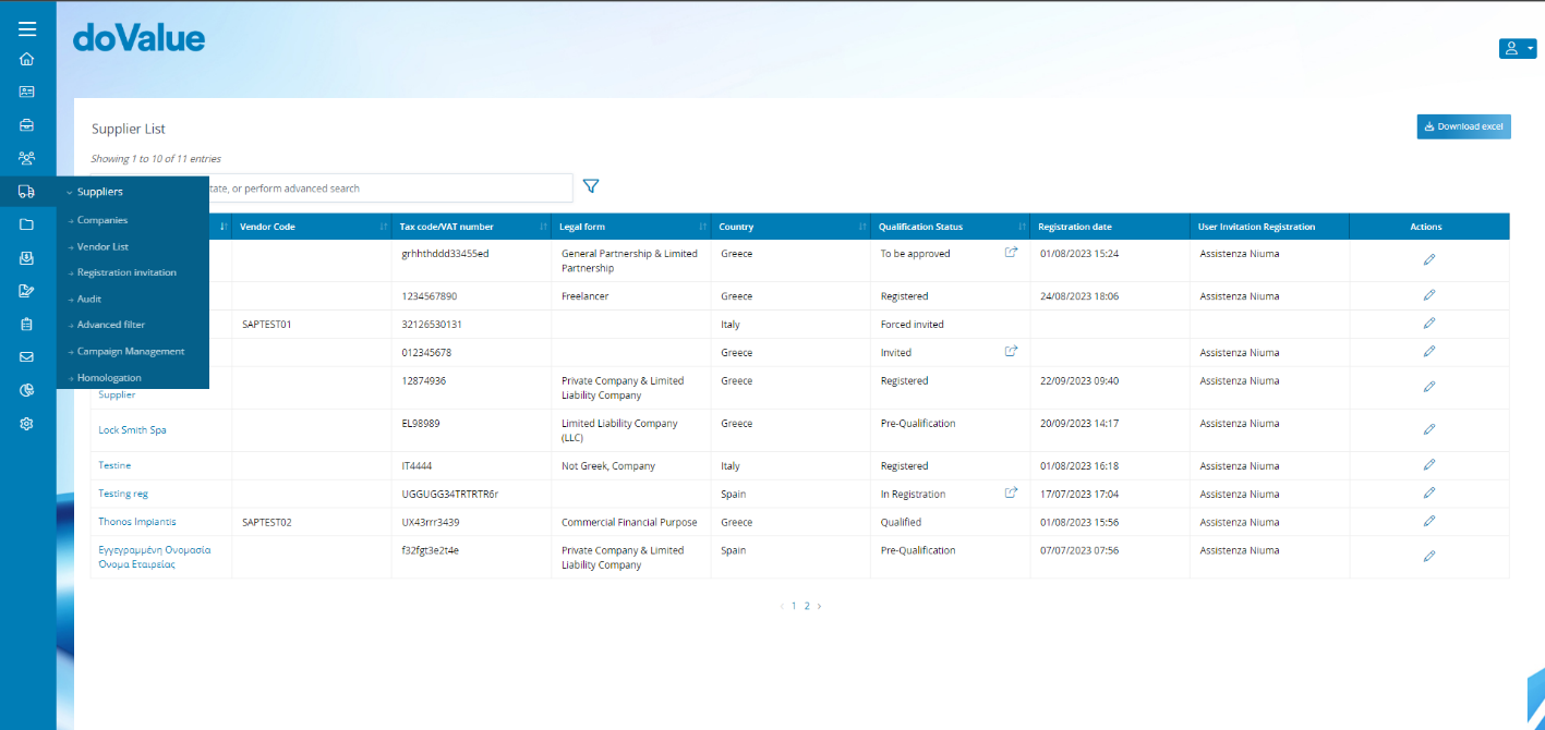 The Suppliers section is dedicated to supplier management and provides a range of features for accessing and reviewing supplier data and information.