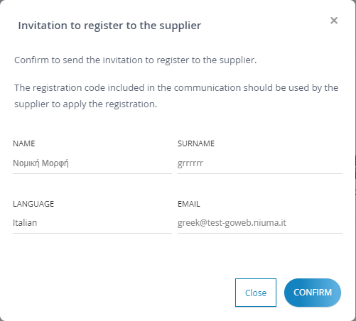 Additionally, users have the option to invite a supplier to register on the platform by clicking the icon