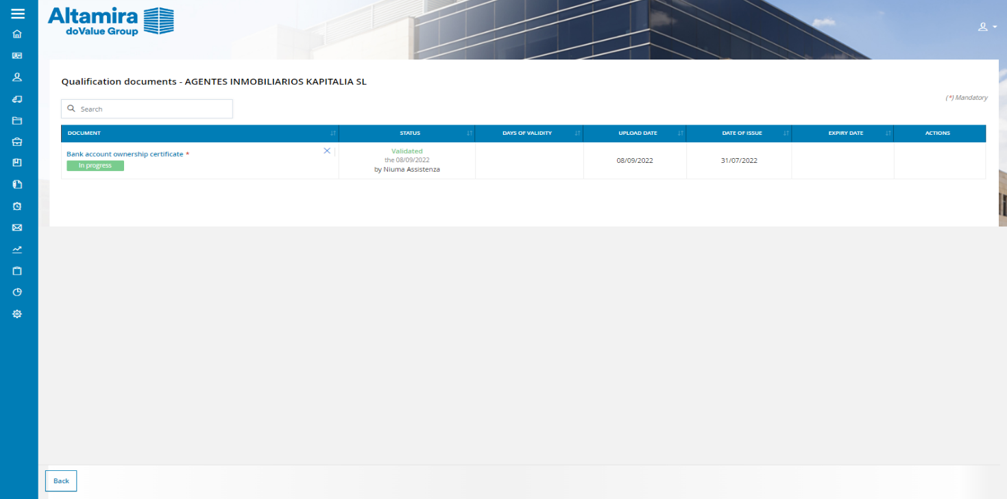 Once all documents have been validated, you can conclude the supplier qualification process by clicking on the symbol
