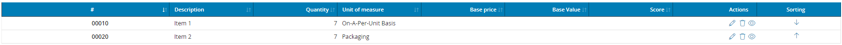- Basic price: The basic unit price for the good/service, which serves as the reference value for calculating reductions in the event of a downward tender.