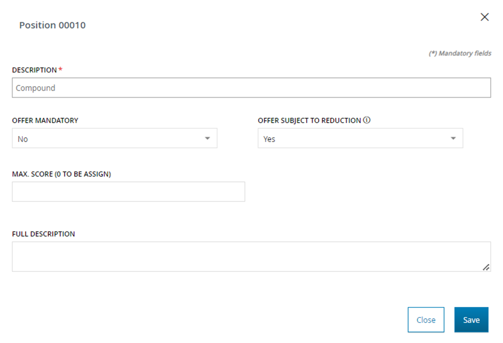 - Mandatory Offer: Define whether or not submitting an offer for this specific position is mandatory. The default value is 'No'.