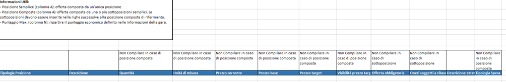 The internal user can also fill in the economic positions of the tender by importing an Excel file. The internal user has the option to download an Excel file using the
