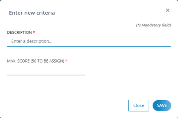 Max. Score (<value> to be assigned)*: In this field, the internal user can enter the technical score to be attributed to the criterion, along with an indication of the remaining score to be allocated.