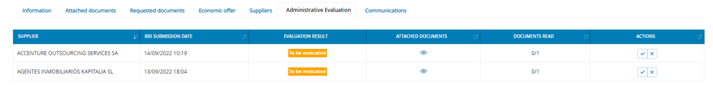 If all the documents of all suppliers have not been read, an alert message will warn the evaluator that it will not be possible to close the administrative verification until they complete the reading of all documents.