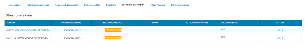 - Documents Read: This field displays a numerical indication of the documents that have already been read as a fraction of the total documents attached by the supplier.