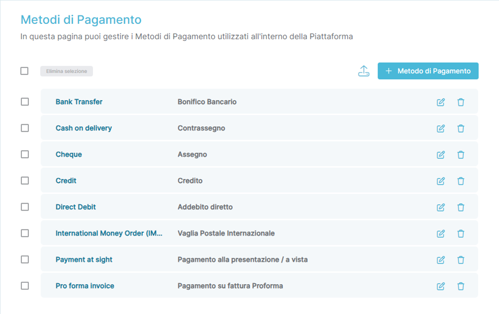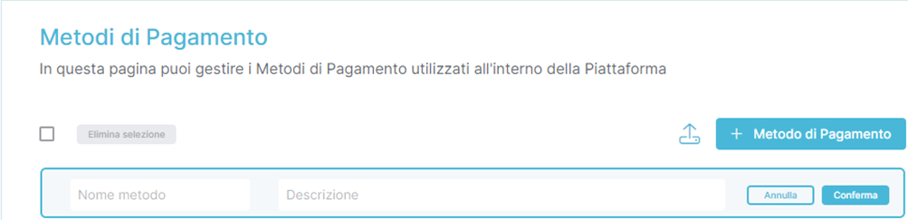 Dalla pagina dei Metodi di Pagamento è possibile: