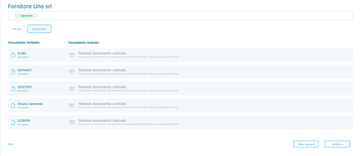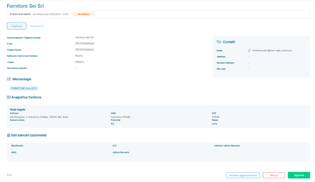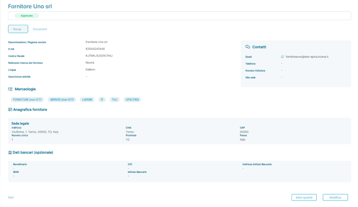 In this application state, the supplier has completed the onboarding process, has been correctly imported from the bulk import file of suppliers, or has been added manually; therefore, all detailed information about the supplier is present. In this state, it is possible to: