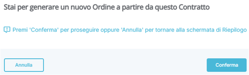 , a window will appear asking the ORBIT User to explicitly confirm the creation of the Draft Order, which can be confirmed by pressing the dedicated button