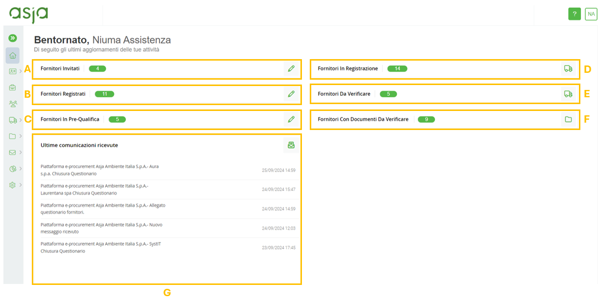 - Invited Suppliers (A): Leads to the page listing suppliers filtered by the status "Invited."