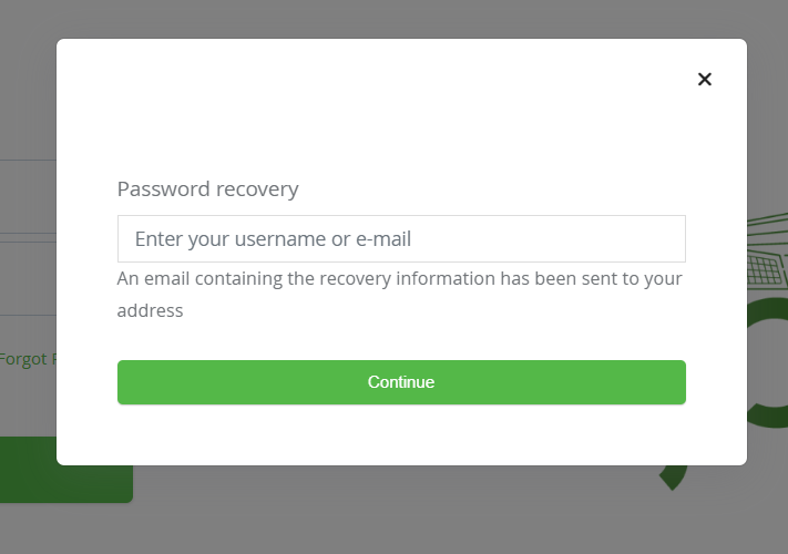 Figure 3: Password Recovery Procedure - Email Sent Confirmation
