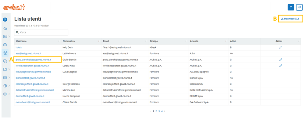 Figure 8. Aruba S.p.A. Portal: User list