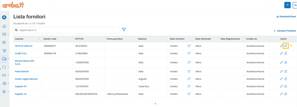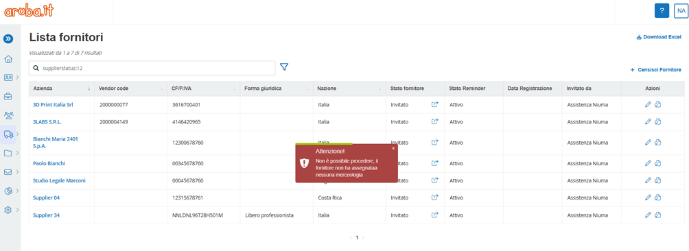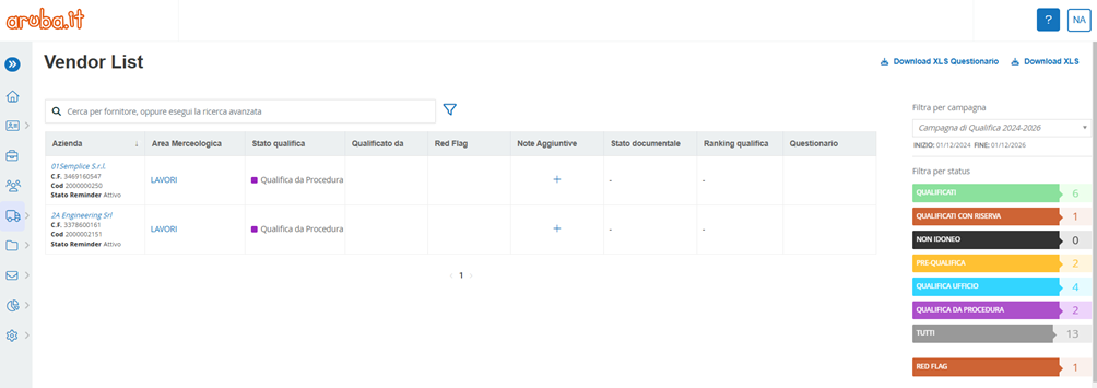 Within the “Companies” section of the portal, the internal user has the option of assigning to each supplier with “Invited” or “In Registration” status, the qualification from the procedure.