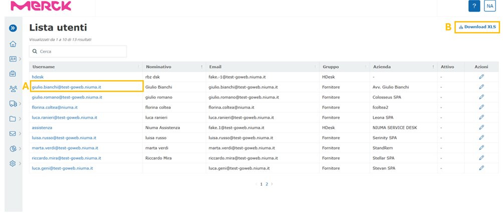 The Users List section allows access to the list of all users surveyed in the platform, both internal users and suppliers.