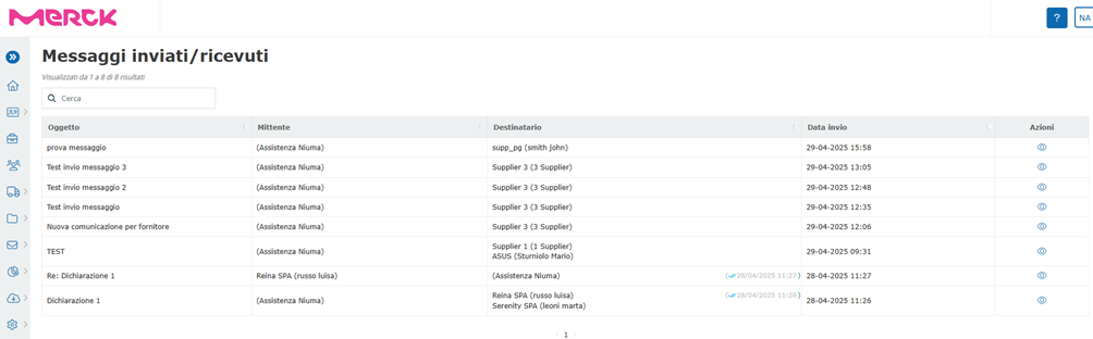 Through the Communications area, it is possible to view all system communications sent to both internal users and suppliers.