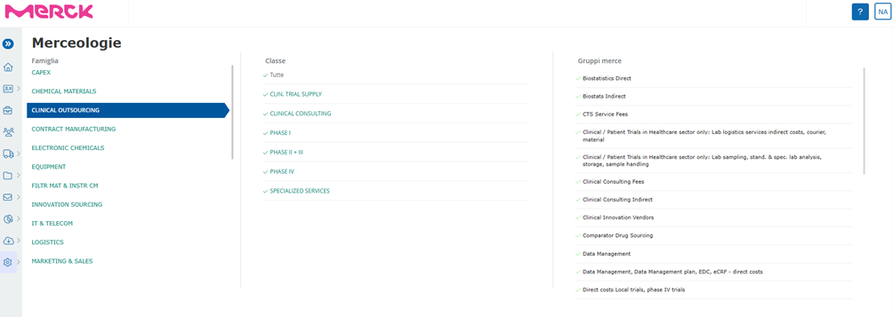 - Commodity categories: in this section it is possible to view, by clicking on each commodity area, the related commodity categories and subcategories