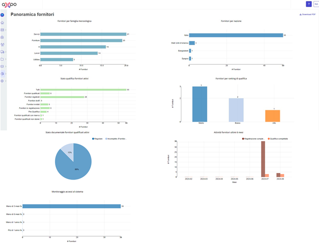 - Attività fornitori ultimi 6 mesi – monitoraggio del numero dei fornitori registrati e qualificati negli ultimi 6 mesi.