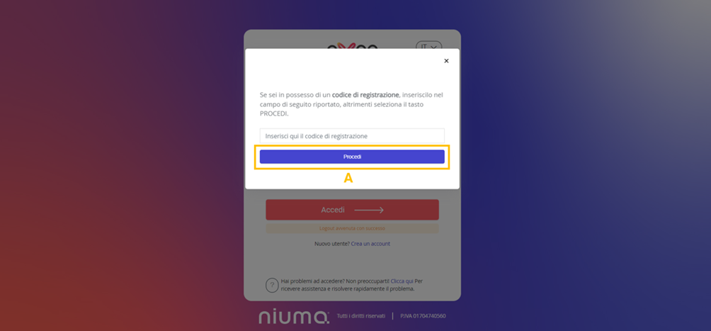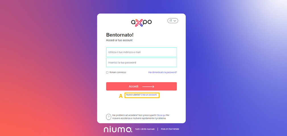 Per procedere con la registrazione, sarà necessario entrare nella pagina di Login In, cliccare sul pulsante “Crea un account(A) (rif. Figura 1).