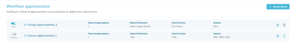 - Entrare nella pagina di dettaglio di un flusso approvativo cliccando sul nome assegnato al flusso in fase di creazione