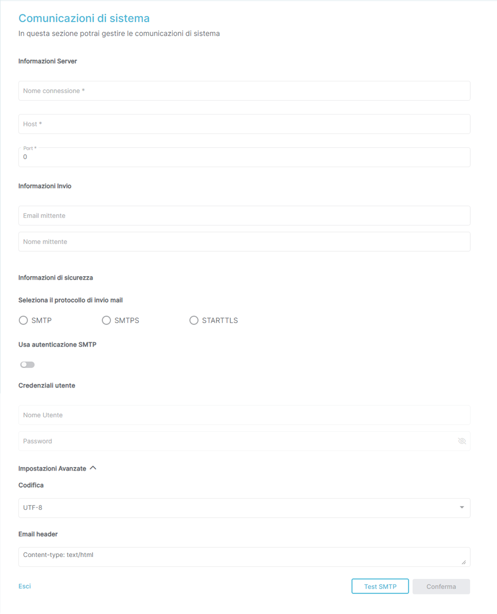 - Permette di inserire un header personalizzato per le e-mail inviate dal server di Posta