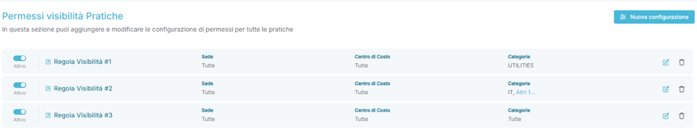 - In caso di regola in stato ‘Attivo’, non sarà consentito eliminare la specifica regola e l’icona preposta risulterà non cliccabile (