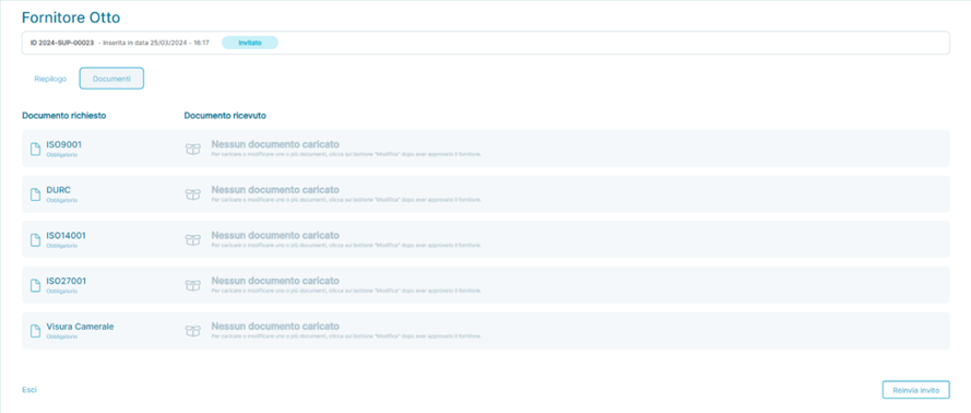 - Per i Fornitori in stato Invitato: