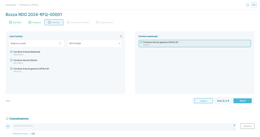 Esempio sezione Fornitori di una Richiesta di Offerta (RDO)