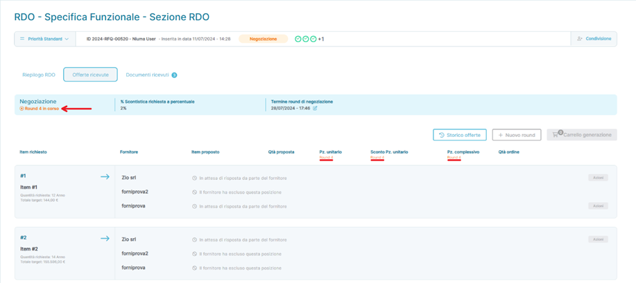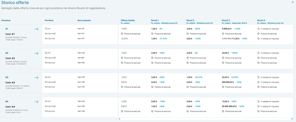 Esempio Storico Offerte di una Richiesta di Offerta (RDO) al quarto Round di Negoziazione