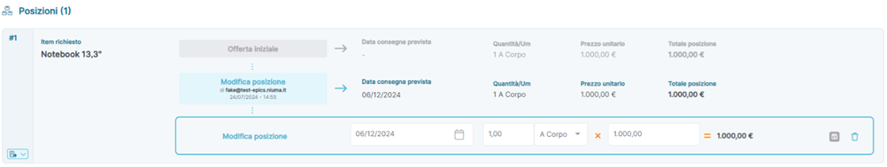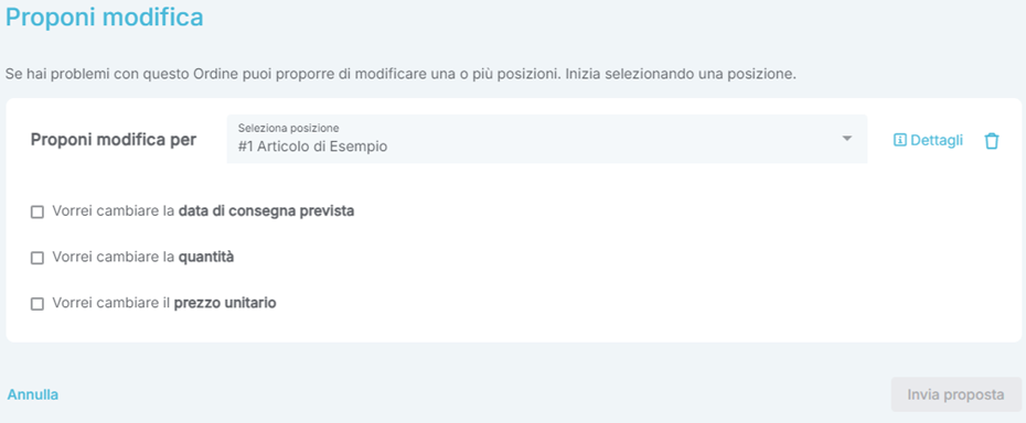 - Proporre a sua volta una modifica ad una o più Posizioni presenti all’interno dell’Ordine dal bottone