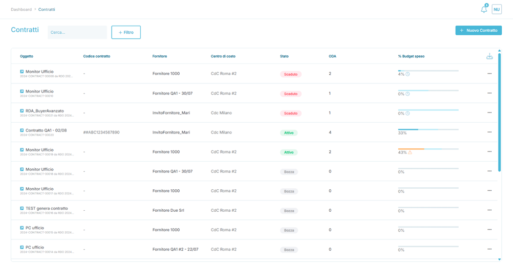 - Stato: Indica lo stato del Contratto in Piattaforma