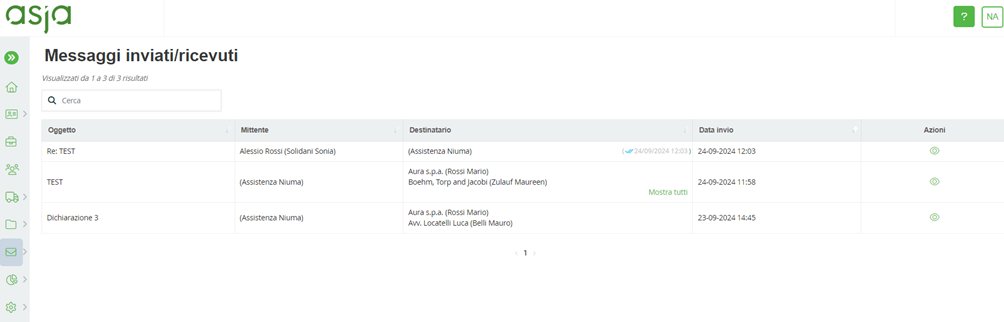 Figura 22. Portale Asja: sezione "Messaggi inviati/ricevuti"