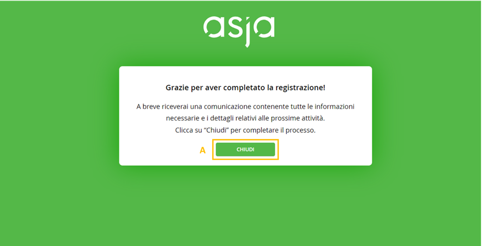 Figura 8. Portale Asja: Flusso di registrazione completato