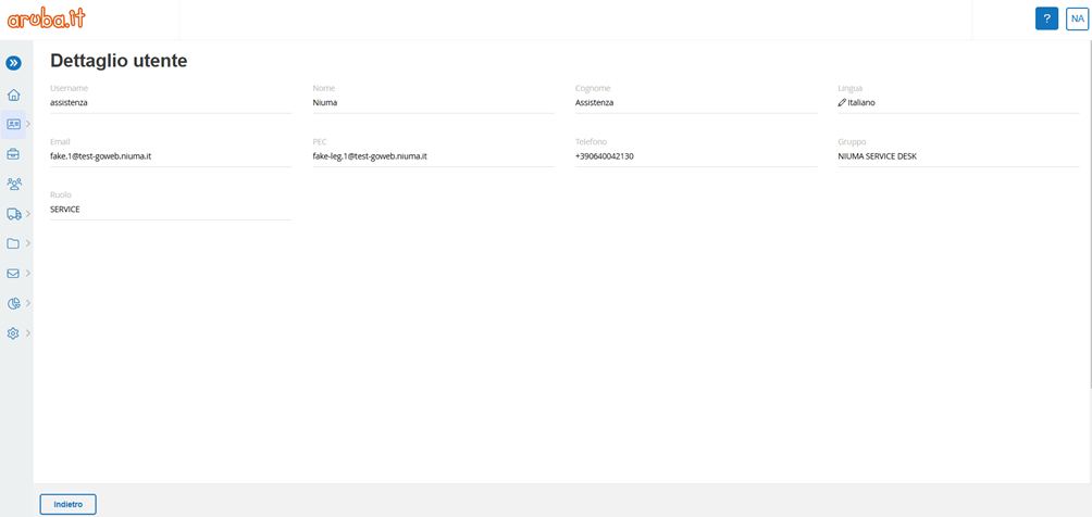 Figura 1. Piattaforma Aruba S.p.A.: Area Personale - Dati Personali