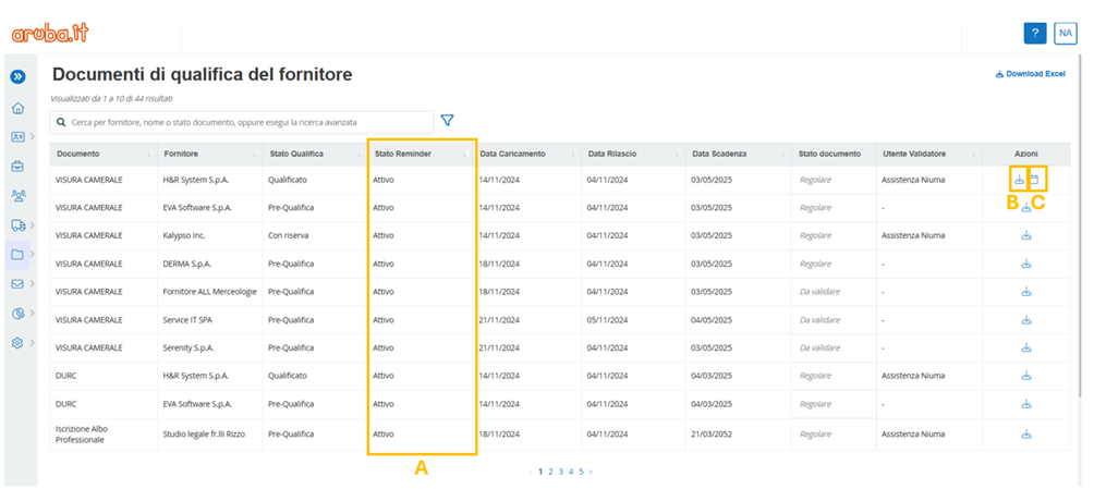 Figura 2. Portale Aruba S.p.A.: Documenti di qualifica del fornitore