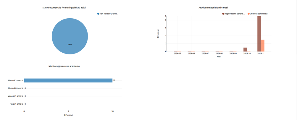 - Attività fornitori ultimi 6 mesi – monitoraggio del numero dei fornitori registrati e qualificati negli ultimi 6 mesi;