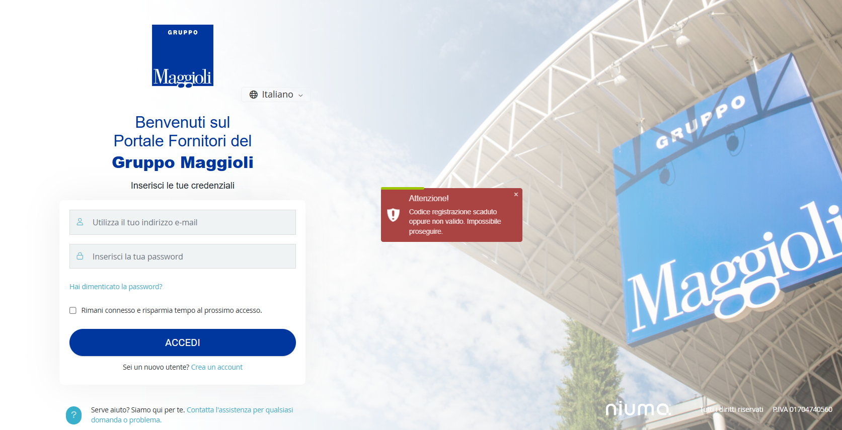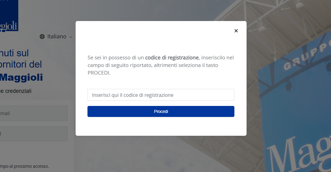 Si precisa che in caso di errore o scadenza della validità comparirà il pop up di errore: "Attenzione Codice di registrazione scaduto oppure non valido. Impossibile proseguire!" (Figura 4)