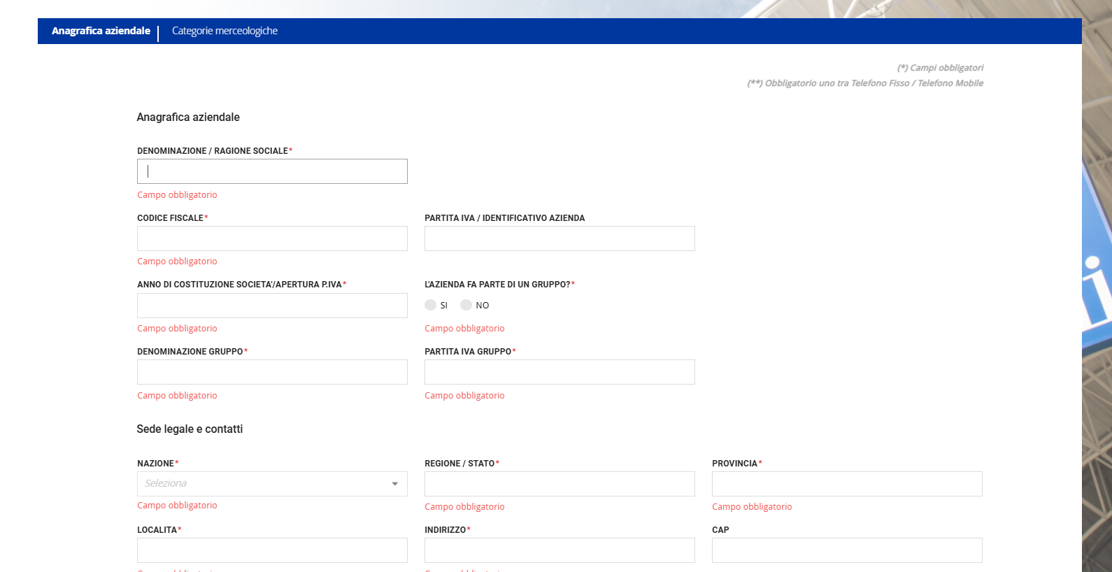 4. l'utente accede alla pagina di Anagrafica aziendale dove è possibile procedere alla compilazione dei dati(Figura 5):