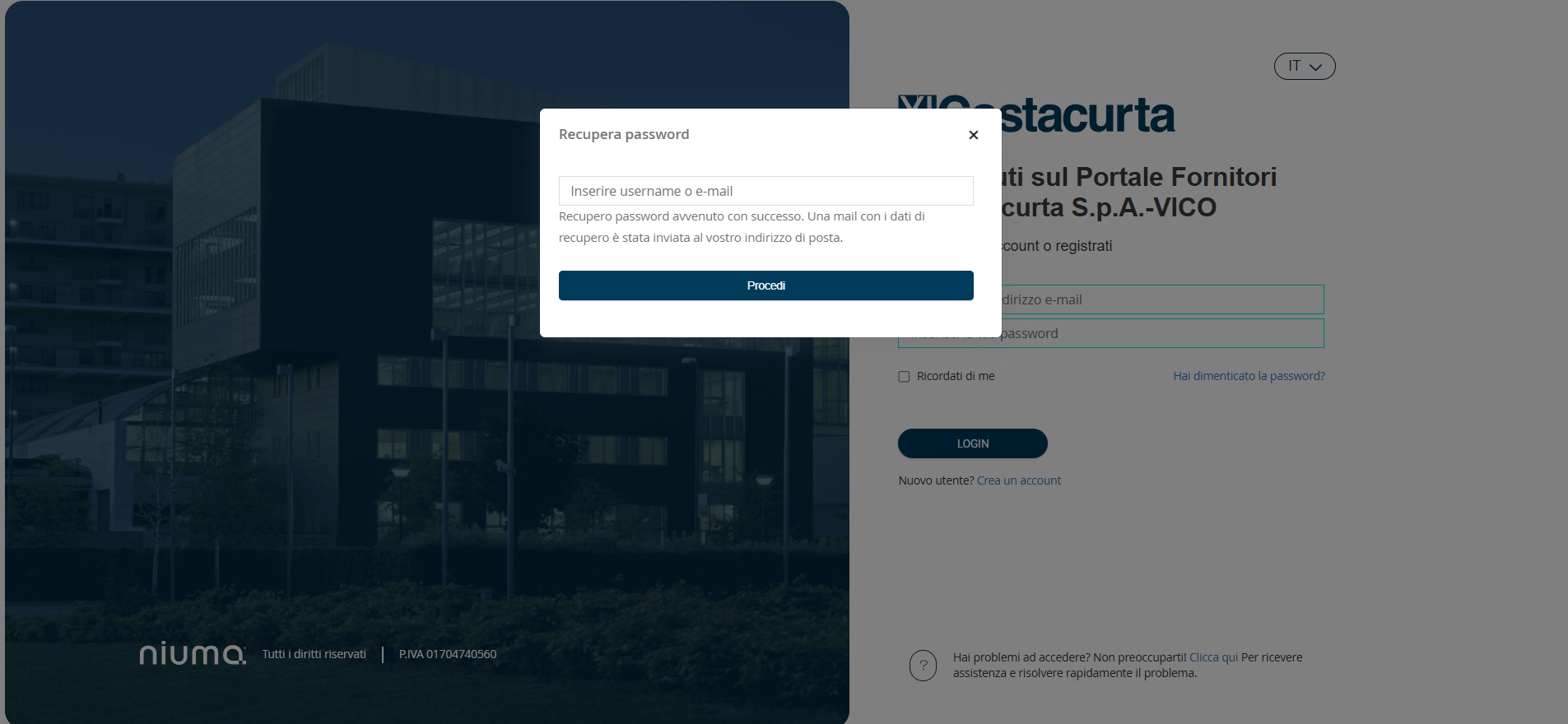 Figura 3 : Procedura di recupero Password - conferma invio email