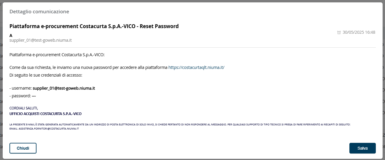 Figura 4: comunicazione email di reset/recupero password