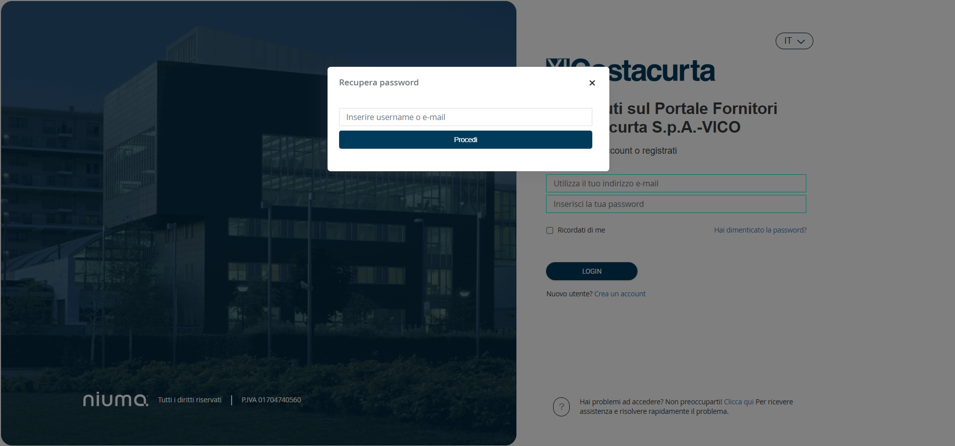 Figura 2: Procedura di recupero Password - inserimento username - email